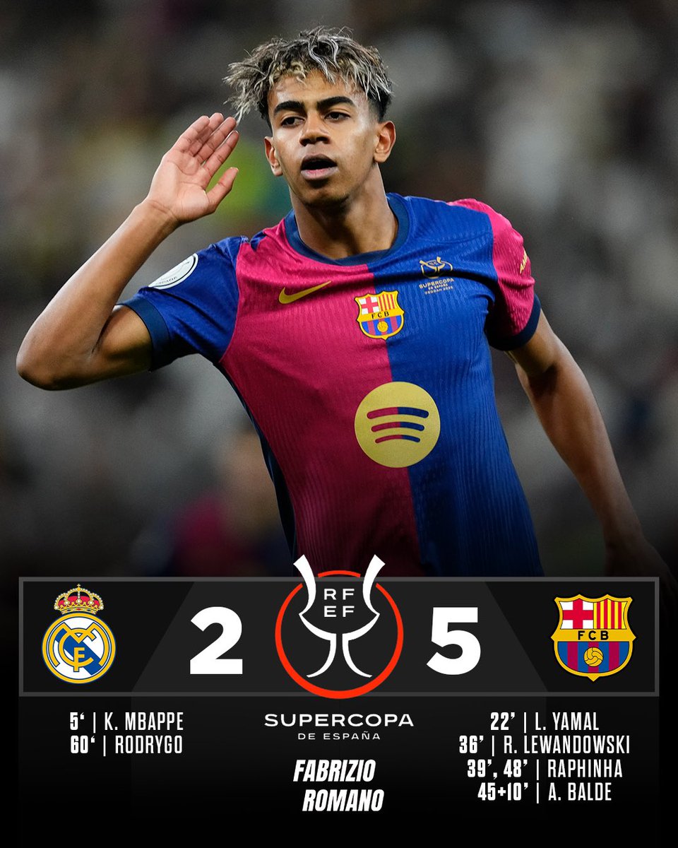 Barcelona claim their first title under Hansi Flick after a stunning Supercopa de España victory against Real Madrid.